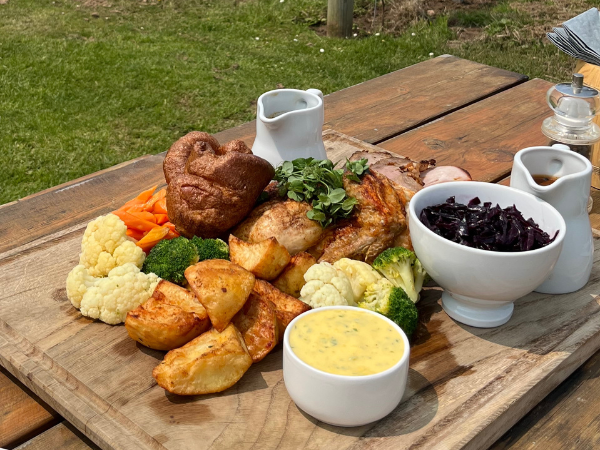 Each board includes roast gammon, roast beef and half a roast chicken, served with golden roast potatoes, Yorkshire puddings, seasonal vegetables and rich, homemade gravy.